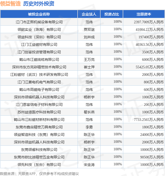 本站音信,凭证天眼查APP清晰,领益智造(002600.SZ)新增全部对外投资事件,被投资公司为杭州铂科电子有限公司,法定代表东谈主尹国栋kaiyun体育网页版登录,投资占比为1.96%。该公司从事电气机械和器材制造业,注册老本为1738.636366万东谈主民币。当今,领益智造共存在对外投资36项,投资占比前20的名堂见下表: