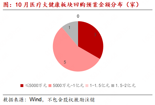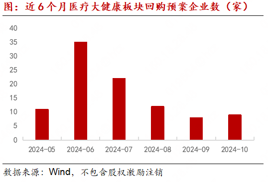 2024年10月,医疗大健康板块股份回购热度相较9月(8家)略有飞腾,有9家上市公司月内新发布股份回购预案(不包含回购用于股权激发刊出情况),其中8起处于董事会预案阶段,1起参预实行阶段。干系要素呈现以下特征:(1)回购口头上均为皆集竞价交往回购;(2)回购预备以股权激发与职工执股推断干系预备为主,其中实行股权激发或职工执股推断5起,实行股权激发1起,市值处理预备2起,1起为其他预备(健之佳回购股份后拟出售);(3)回购资金来源方面,2起为自有资金,6起为自有资金及自筹资金,1起为自筹资金,或与近期贷款回购政策干系,药康生物等公司聘任自有资金和股票回购专项贷款资金动作回购资金来源;(4)从所处细分行业范围来看,上述回购公司业务范围较为分散,医疗器械2起,化学制药2起,生物成品1起,医疗作事2起,中药1起,医疗贸易1起。
