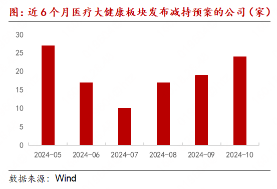 2024年10月,医疗大健康范围减执热度有所飞腾,共有24家(上月为19家)上市公司发布股东减执预案。上述减执呈现如下特征:(1)减执口头上,除罗欣药业(维权)、浩欧博(维权)为条约转让外,其余公司股东均聘任皆集竞价交往和(或)大量交往;(2)减执的股东类型上,19家公司为机构股东减执,1家公司为高管减执,3家公司为个东谈主股东减执,1家为个东谈主股东与高管减执。