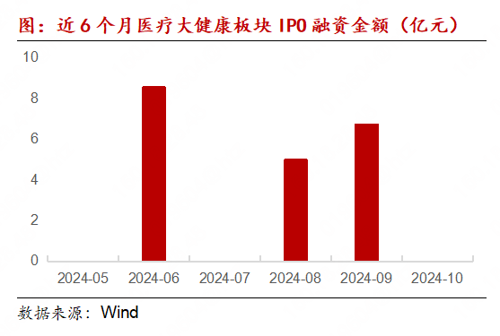 2024年10月,医疗大健康板块暂无企业IPO上市,对应暂无企业进行计策配售。
