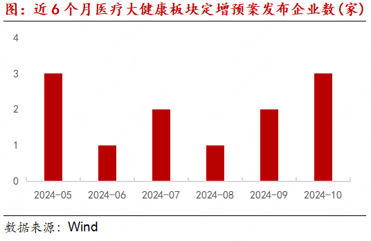 2024年10月,医疗大健康板块1家上市公司完成定增刊行,为盈康生命。公司10月23日公告讦行情况,召募资金总额9.70亿元,净额9.60亿元,一齐用于补充流动资金。此外,月内4家企业更新定增进展,浙江震元、奕瑞科技增发获交往所受理,新诺威刊行股份及支付现款购买资产并召募配套资金决策获董事会及股东大和会过,汉商集团刊行股份及支付现款购买资产并配套募资事项获董事会与监事会会议审议通过。