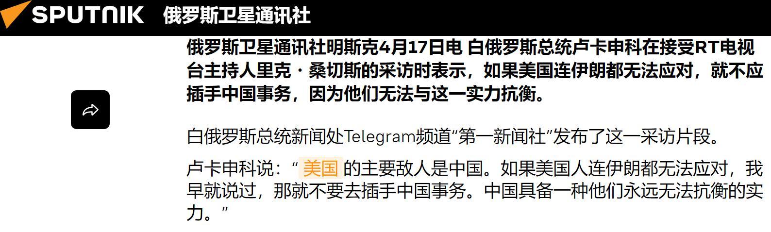 领先,白俄和伊朗的表态逻辑截然相悖,一个是“抬”中国,另一个是“绑”中国。
